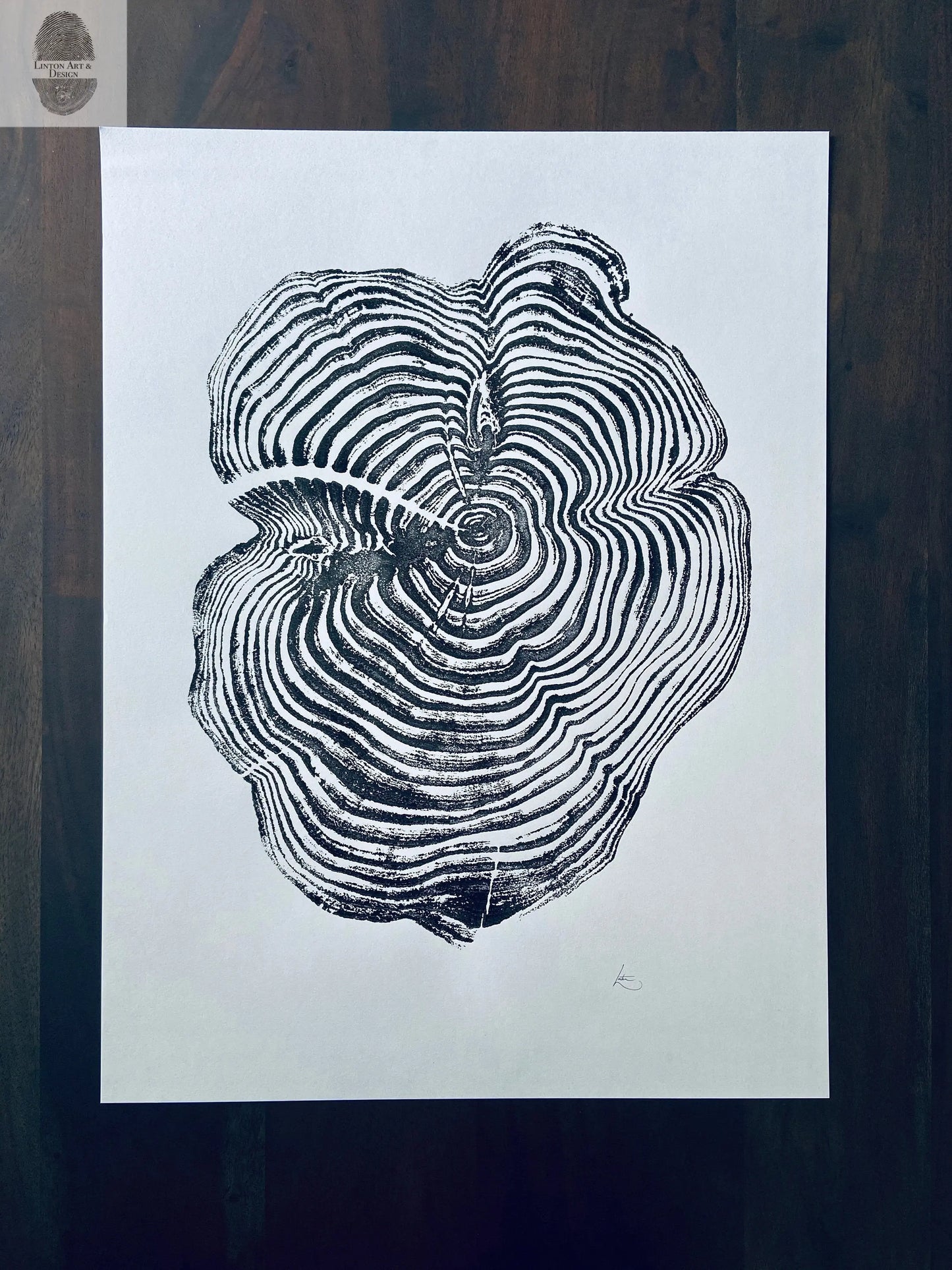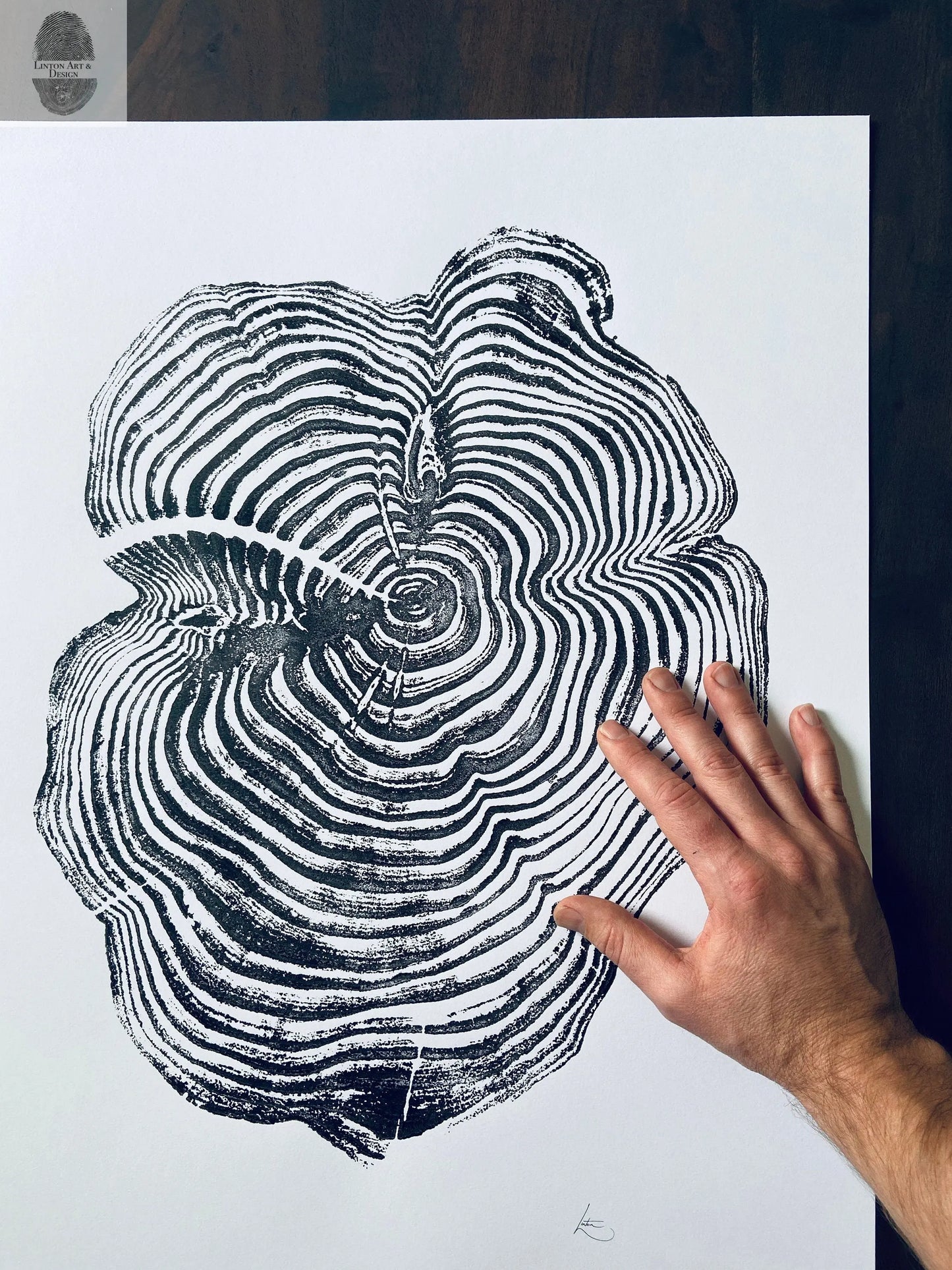 When you buy one of these tree ring prints, you’re getting an actual handmade woodcut print, not something printed from a machine. That’s because I consider each a work of art that is as unique as the tree I make them from. I also don’t believe in cutting down trees to make my art. I travel to meaningful places to find wood from previously fallen trees. In a way, I’m just publishing the story of a place as written by a tree over decades and sometimes hundreds of years. I sign each print because I stand by my work. If you’re not happy with the artwork I will give you a full refund, no questions asked.